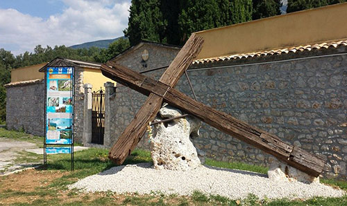 La croce vecchia e la croce nuova. Alla fine di maggio 2015 la squadra del Soccorso Alpino e Speleologico di Collepardo, sotto la guida del capo stazione Urbano Cerioni, l'ha recuperata e riportata in paese, con l'ausilio di un elicottero messo a disposizione dalla Guardia di Finanza. Il 7 agosto 2015 la croce restaurata è stata collocata nel piazzale antistante il Cimitero comunale, a memoria di tutti coloro che nel corso degli anni hanno raggiunto la vetta: ![]() La notte di S. Lorenzo:Ogni anno, la tradizionale escursione sul monte Rotonaria è abbinata al "Trekking di S. Lorenzo" che si svolge intorno al 10 agosto. Molti partono nel pomeriggio-sera del giorno precedente e pernottano presso la "Sella Faìto" in tenda o sacco a pelo, dopo aver osservato le stelle cadenti. La mattina successiva tutti raggiungono la croce per poi ridiscendere in paese.-----